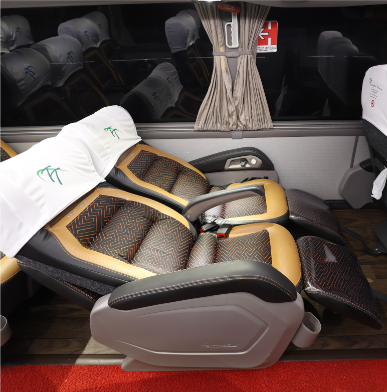Imagine viajar com todo conforto, da forma que você quiser! O ônibus de turismo Leito Master é a opção favorita para viagens mais longas, já que as poltronas reclinam totalmente e você tem a comodidade de viajar deitado, para descansar durante o trajeto, ou sentado, apreciando a vista.